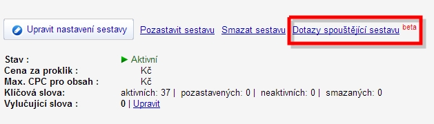 Po nastavení těchto parametrů je kampaň spuštěna a je možné sledovat jak počet zobrazení a prokliků, tak sousloví, na která se reklama zobrazí . Správa kampaní je omezena na změny reklamního textu, publik a rozpočtu. Klíčová slova, na která se bude reklama zobrazovat, určuje systém sám.